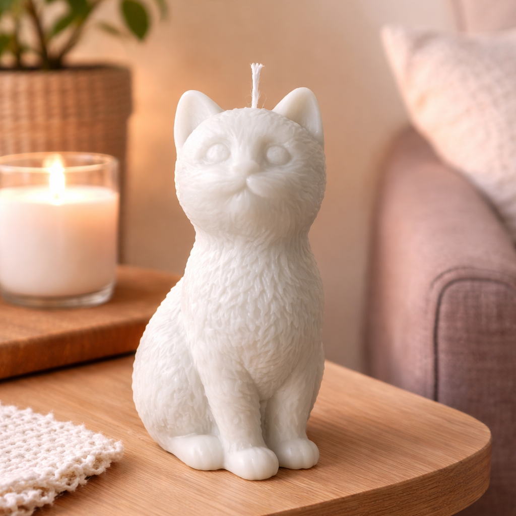 La candela gattino in cera di soia è pensata per gli amanti degli animali. Il suo design curato nei dettagli richiama la dolcezza dei piccoli gesti quotidiani, trasformandola in una candela decorativa perfetta come idea regalo per amanti dei gatti o come complemento d’arredo in stile nordico e minimal.